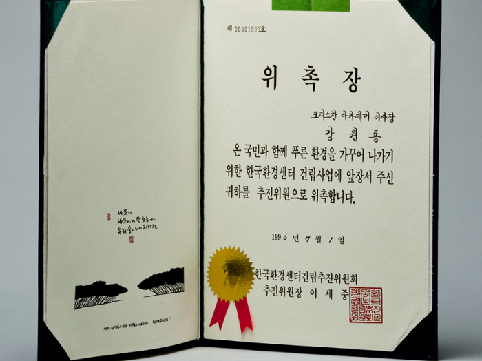 한국환경센터건립추진위원회 추진위원 위촉장