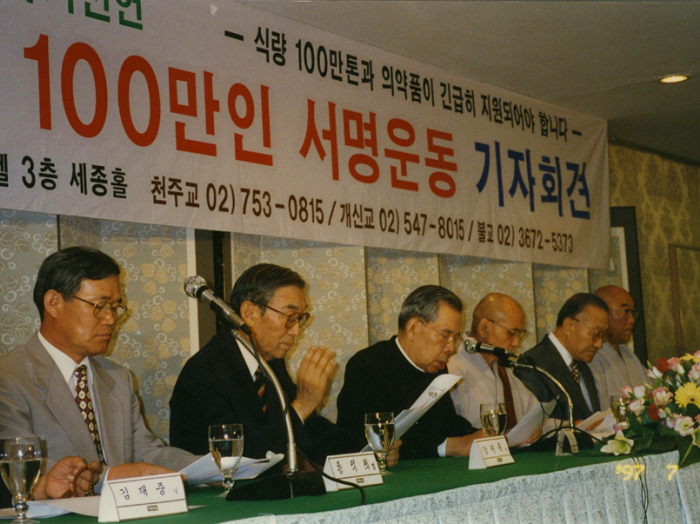 민족화해를 위한 북한동포돕기 100만인 서명운동" 기자회견