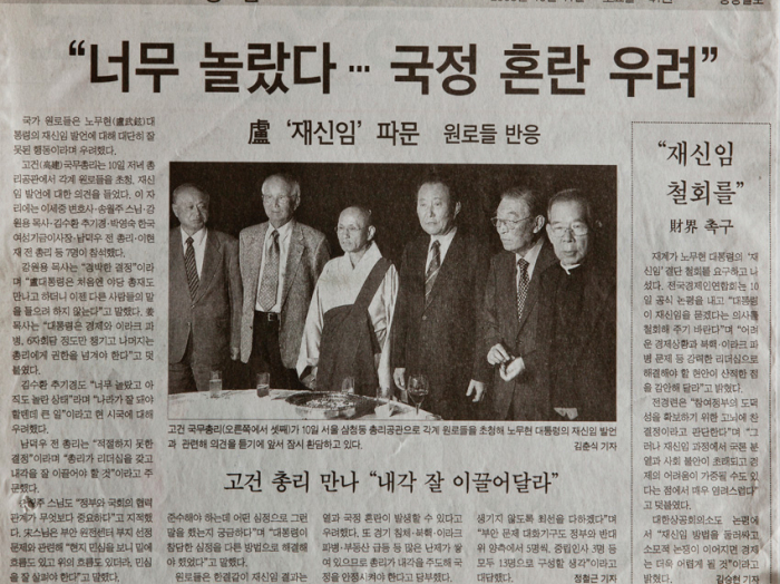 노대통령 재신임 발언 파문 원로들 반응