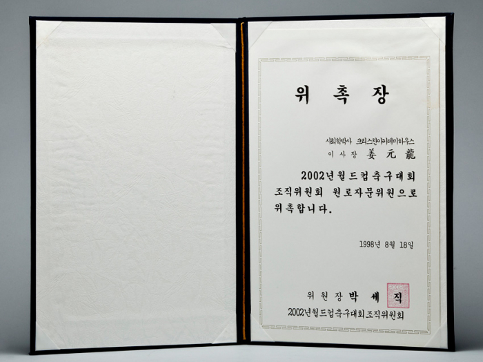 2002년 월드컵축구대회 조직위원회 원로자문위원 위촉장