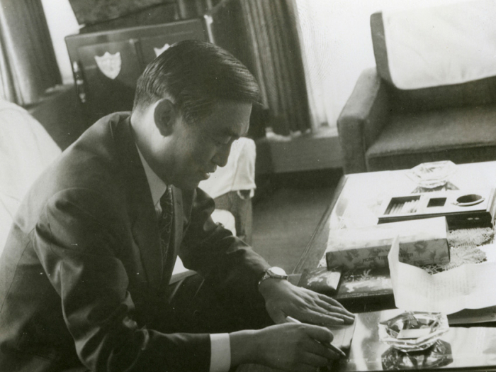수원 사회교육원 기공식의 기념케이크를 자르고 있는 크리스챤 아카데미 이사들