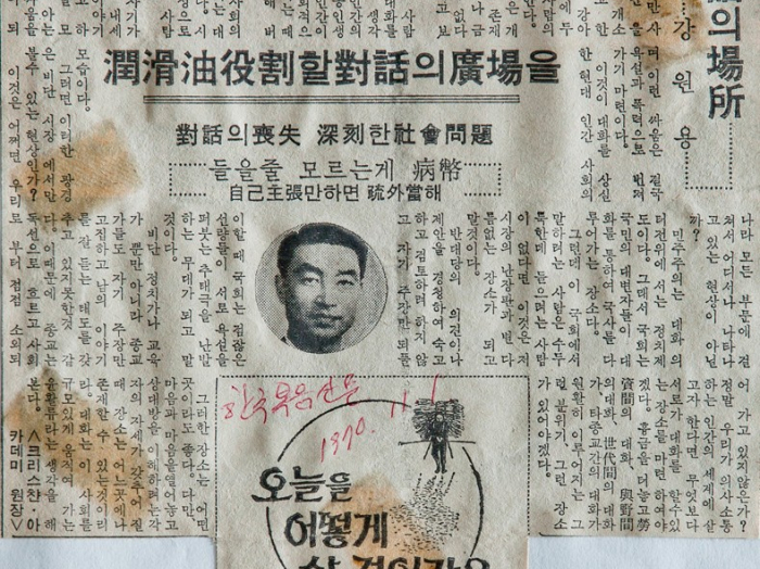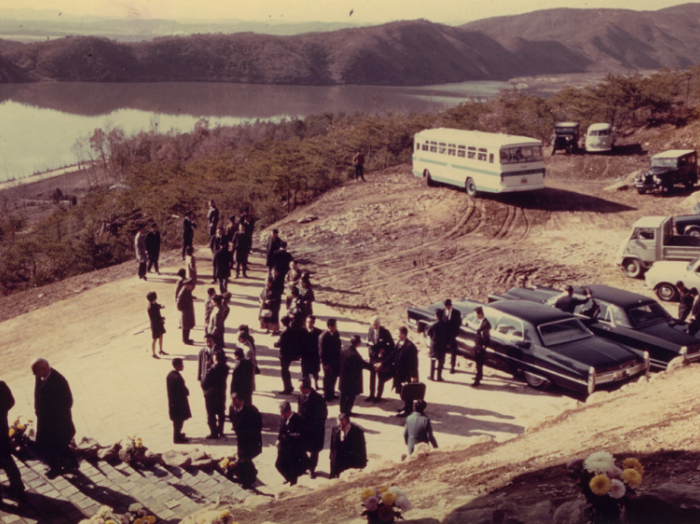 수원 사회교육원 준공식. 오른쪽부터 백낙준 박사, 신범식 문화공보부 장관, 사라친 주한 독일 대사, 강원용 원장, 클라인 목사 등
