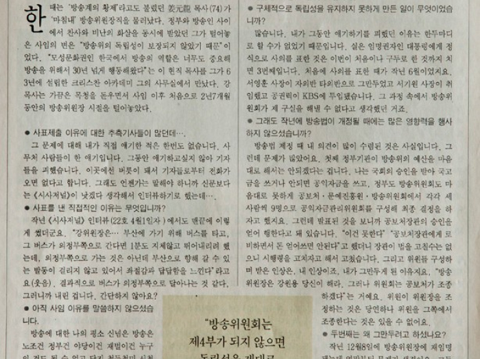 인터뷰 : 전 방송위원회 위원장 강원용 목사