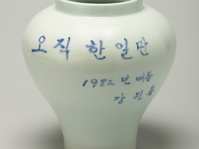 친필 도자기 "오직 한 일만" (강원용 작)