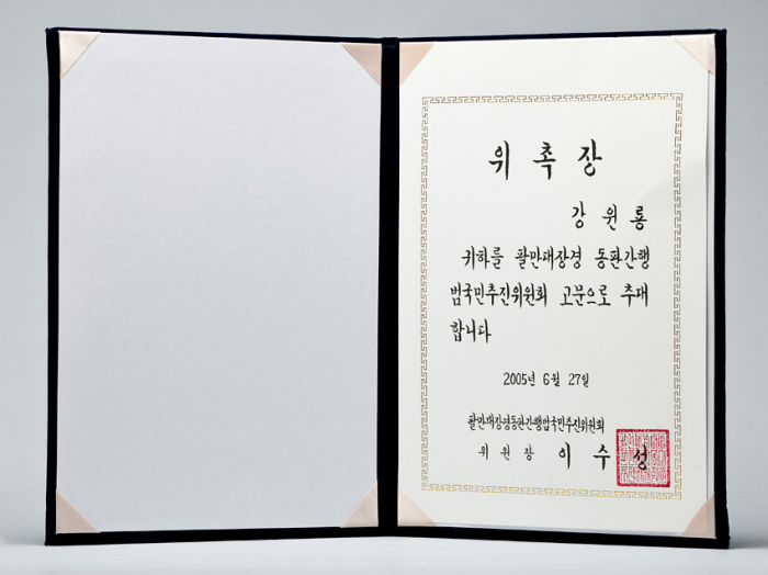 팔만대장경동판간행범국민추진위원회 고문 위촉장