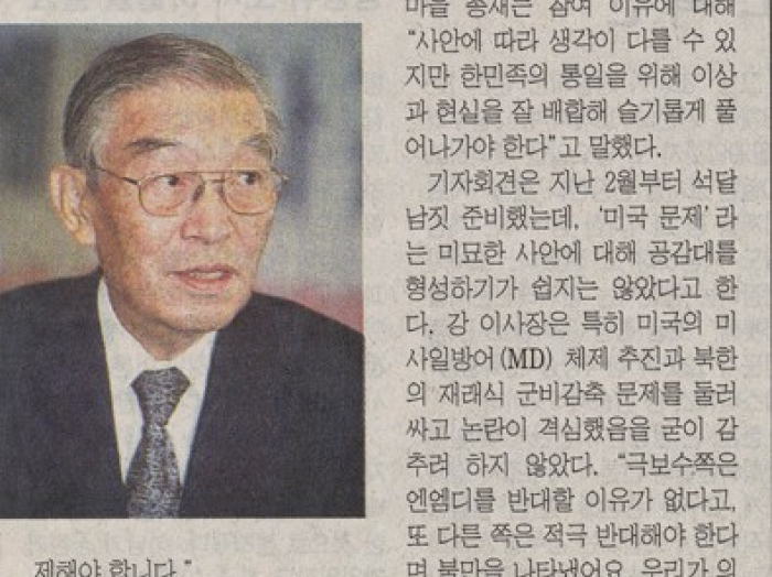 ‘MD 반대 서한 주도 강원용 평화포럼 이사장