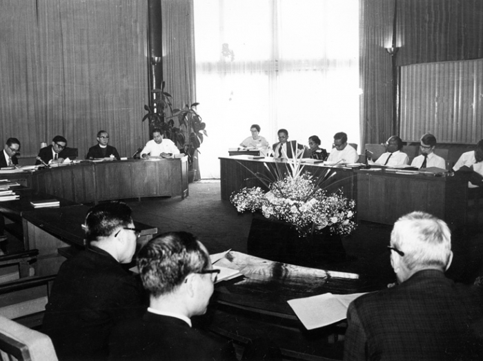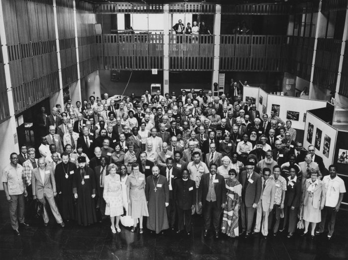 WCC(세계교회협의회) 본부 로비에 모인 중앙위원들