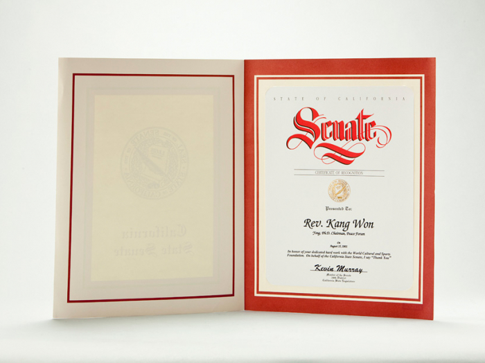 Certificate of Recognition - Member of the Senate 26th District California State Legislature