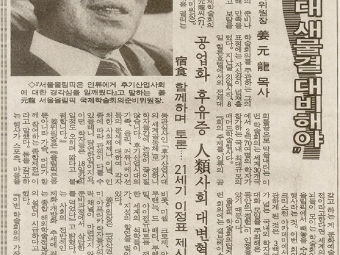 후기산업시대 새물결 대비해야: 서울올림픽 국제학술회의 준비위원장 강원용 목사