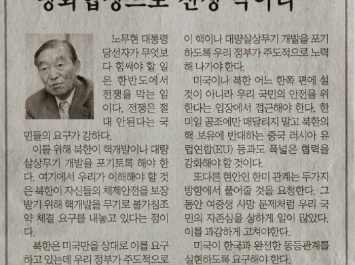 당선자에게 바란다 - 강원용 평화포럼 이사장