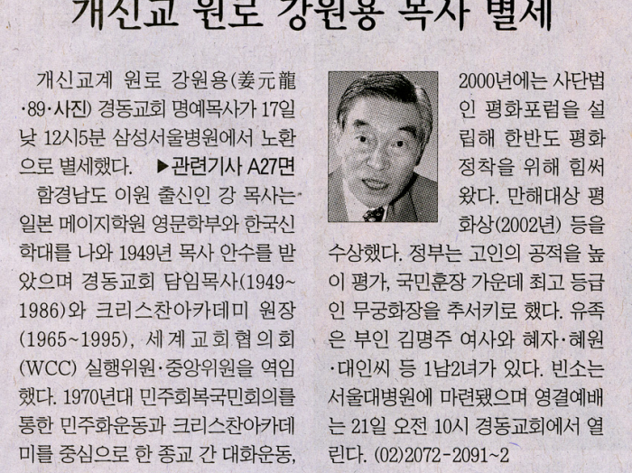 "개신교 원로 강원용 목사 별세 (여해사업회039)