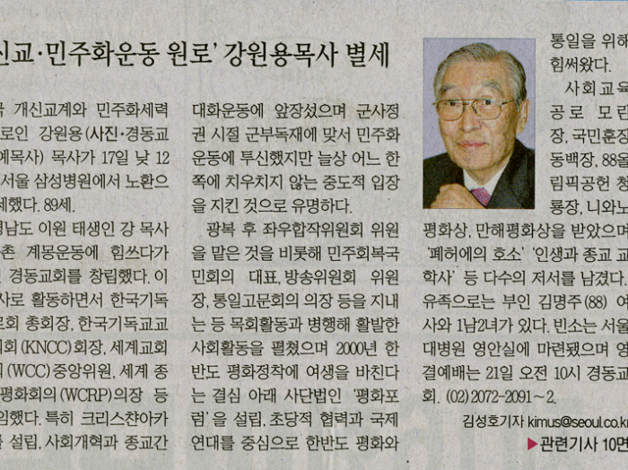 개신교, 민주화운동 원로 강원용 목사 별세 (여해사업회009-1)