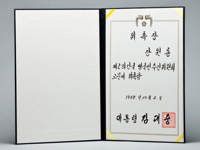 제2의 건국 범국민추진위원회 고문 위촉장. 대통령 김대중