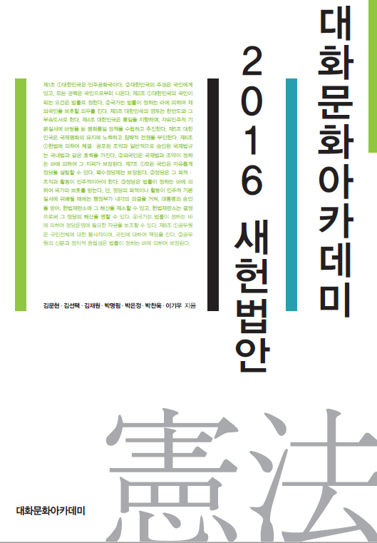 대화문화아카데미에서 헌법 논의를 시작한 지 10년이 되었다. 2006년 4월, 대화문화아카데미가 마련했던 대화모임의 당초 취지는 헌정 60년을 맞아 헌법을 매개로 국가의 정체성과 정치공동체상을 성찰해보려는 것이었다. 그런데 대화모임은 예상과 달리 지속적인 헌법 논의의 장으로 이어졌다. 모임 참가자들 사이에 새로운 헌법이 필요하다는 공감대가 형성되었고 새로운 헌법을 조문화하는 작업으로 나아가자는 데 의견이 모아졌다.