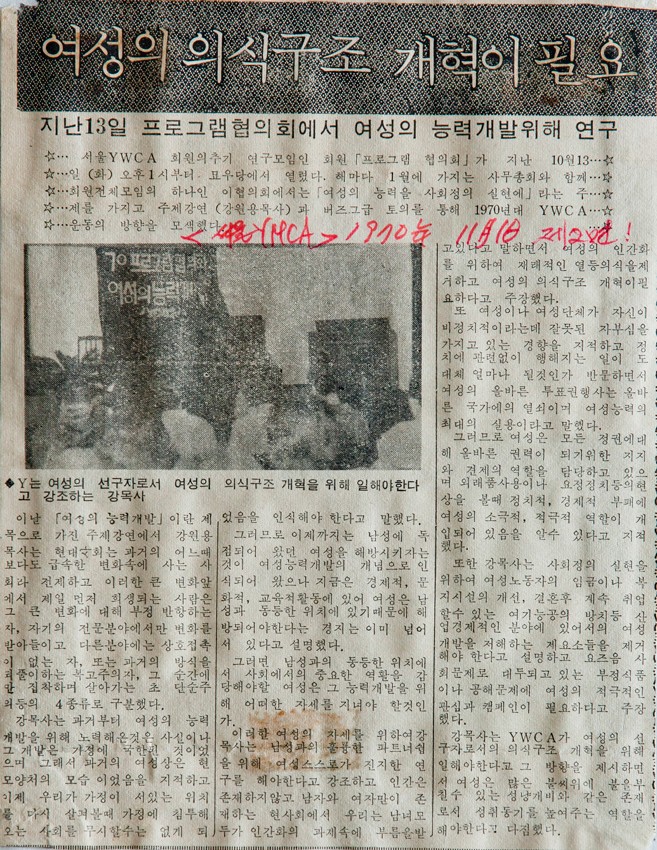 여성의 의식구조 개혁이 필요 작성일 : 2011.06.29 조회수 : 19 공유하기 페이스북으로 공유하기 페이스북으로 공유하기 URL 남성과의 훌륭한 파트너십을 위해 여성 스스로가 진지한 연구를 해야 한다. 인간은 존재하지 않고 남자와 여자만이 존재하는 현사회에서 우리는 남녀 모두가 인간화의 과제 속에 부름을 받고 있고 여성의 인간화를 위하여 재래적인 열등의식을 제거하고 여성의 의식구조 개혁이 필요하다. 관련일시 1970.11.01 노트 서울YMCA 태그 신문기사 이전 한신대 신입생을 위한 내일&리더십 캠프 다음 1차 멘토 포럼 목록으로