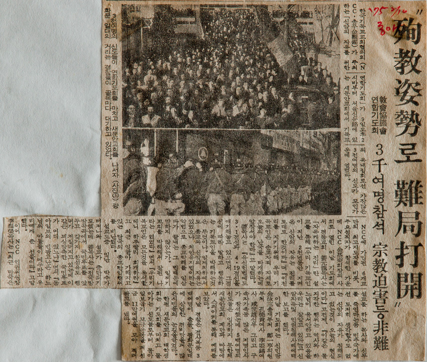 한국기독교교회협의회 주최 : 신앙과 자유를 위한 연합기도회 작성일 : 2011.06.29 조회수 : 18 공유하기 페이스북으로 공유하기 페이스북으로 공유하기 URL 기독교인이 지난 2천년 동안 지켜온 신앙의 자유는 진리를 토대로 한 것이다. 이 진리를 지키기 위해 우리 기독교인은 순교자적 자세로 오늘의 난국을 타개하는 데 앞장서야 한다. 관련일시 1975.02.14 노트 동아일보 태그 신문기사 이전 한신대 신입생을 위한 내일&리더십 캠프 다음 1차 멘토 포럼 목록으로