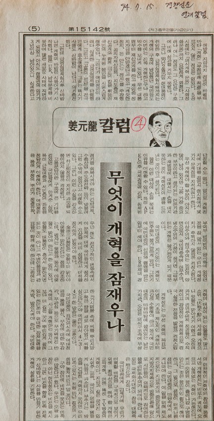 강원용 칼럼 : 무엇이 개혁을 잠재우나 작성일 : 2011.06.29 조회수 : 16 공유하기 페이스북으로 공유하기 페이스북으로 공유하기 URL 개혁정치는 우선 개혁의 목표와 이념적 기초와 제도적인 개혁부터 과감히 수행해야 하고 동시에 국민 대중의 마음바탕에 깔려있는 낡은 가치관, 오염된 의식구조 속에 무성한 “가시덤불 속에 씨를 뿌리지 말고 묵은 땅을 새로 갈아엎고 씨를 심으라”고 한 말씀은 옳은 교훈이다. 관련일시 1994.07.15 노트 경향신문 태그 신문기사 이전 한신대 신입생을 위한 내일&리더십 캠프 다음 1차 멘토 포럼 목록으로
