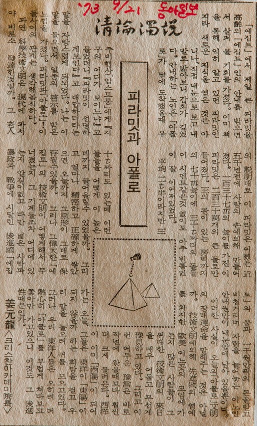 피라밋과 아폴로 작성일 : 2011.06.29 조회수 : 17 공유하기 페이스북으로 공유하기 페이스북으로 공유하기 URL 기술문명에 의해 선진국의 영예를 차지한 구미에서는 어느 모임에 가든지 많은 사람들이 기술문명의 내일을 어둡게 예견하면서 東洋이 東陽이 되지 않을까 하는 희망을 걸고 우리 말을 들으려 하는데 우리 동양인들은 아직 ‘아폴로’를 부럽게 쳐다보고 있는 것은 후진성 때문인가.... 관련일시 1973.09.21 노트 동아일보 태그 신문기사 이전 한신대 신입생을 위한 내일&리더십 캠프 다음 1차 멘토 포럼 목록으로