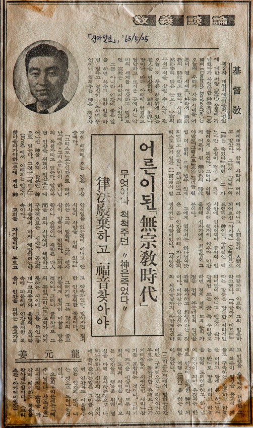 교의논단 - 어른이 된 무종교시대 작성일 : 2011.06.29 조회수 : 19 공유하기 페이스북으로 공유하기 페이스북으로 공유하기 URL 구체적인 역사 안에 인간이 되어 들어와 인간을 위해 철저히 싸우다 인간을 위해 십자가에서 희생당한 예수 그리스도에게 있어서 하나님의 뜻은 곧 인간을 위해 자기를 희생시키는 사랑이었다. 오늘의 우리 문제는 예수나 사도바울의 시대처럼 율법을 과감히 폐기하고 복음을 찾아내는 일이다. 관련일시 1965.05.25 노트 신아일보 태그 신문기사 이전 한신대 신입생을 위한 내일&리더십 캠프 다음 1차 멘토 포럼 목록으로