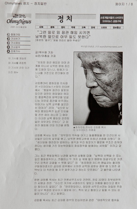 원로의 절규 : 제발 이러지 말아 주세요 작성일 : 2011.06.29 조회수 : 17 공유하기 페이스북으로 공유하기 페이스북으로 공유하기 URL 통일부 장관이 잘못이 있으면 당연히 해임돼야 하지만 평양축전에 방북단을 보냈다는 이유로 장관을 바꾸라는 이야기는 남북 교류를 끊으라는 이야기라며 남북 평화와 관련된 일에 우려를 나타냈다. 관련일시 2001.09.03 노트 오마이뉴스 태그 신문기사 이전 한신대 신입생을 위한 내일&리더십 캠프 다음 1차 멘토 포럼 목록으로