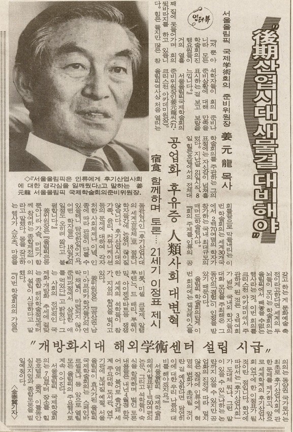 후기산업시대 새물결 대비해야: 서울올림픽 국제학술회의 준비위원장 강원용 목사 작성일 : 2011.06.29 조회수 : 18 공유하기 페이스북으로 공유하기 페이스북으로 공유하기 URL 이번 회의를 크리스챤아카데미에서 주관하게 된 것은 3백여 회가 넘는 국내외 학자들의 대화모임을 주최해온 그 동안의 경험이 인정을 받았기 때문이다. 강 위원장은 이번 학술회의의 가장 큰 의의는 동양권 국가로서는 최초로 후기산업사회에 관한 문제를 제기하고 앞으로 세계학계의 후기산업사회 연구에 한 이정표가 된 것이라고 말했다. 관련일시 1988.09.06 노트 조선일보 태그 신문기사 이전 한신대 신입생을 위한 내일&리더십 캠프 다음 1차 멘토 포럼 목록으로