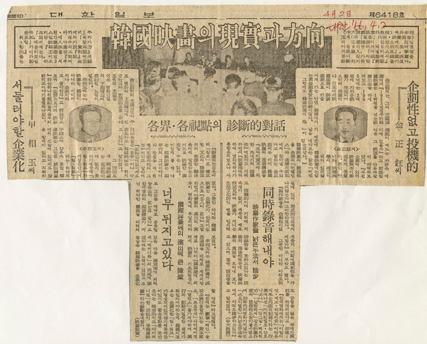 한국영화의 현실과 방향 작성일 : 2011.06.29 조회수 : 17 공유하기 페이스북으로 공유하기 페이스북으로 공유하기 URL "크리스챤아카데미 주최 “한국영화의 현실과 방향”이라는 주제의 대화모임이 워커힐에서 열렸다. 김정옥 교수와 신상옥 감독의 주제강연과 함께 영화인, 언론인, 학자 등이 모여 각각의 시점에서 한국영화의 현실과 문제점 등을 진단했다. (스캔 사진 내용과 제목 다름 확인요)" 관련일시 1966.04.02 노트 대한일보 태그 신문기사 이전 한신대 신입생을 위한 내일&리더십 캠프 다음 1차 멘토 포럼 목록으로
