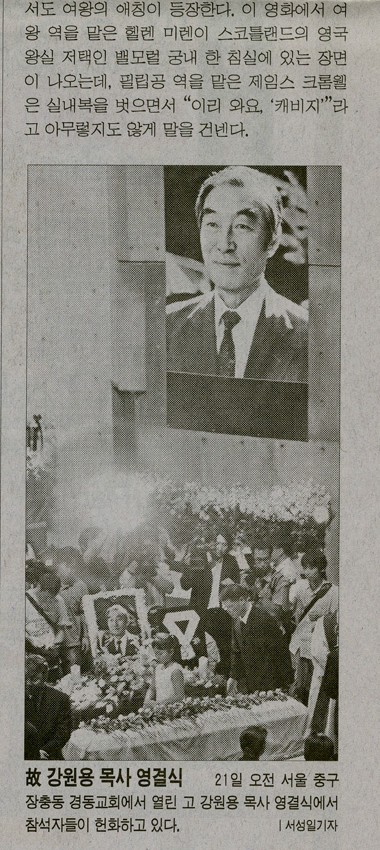 고 강원용 목사 영결식 (여해사업회035) 작성일 : 2011.06.29 조회수 : 17 공유하기 페이스북으로 공유하기 페이스북으로 공유하기 URL 21일 오전 서울 중구 장충동 경동교회에서 열린 고 강원용 목사 영결식에서 참석자들이 헌화하고 있다. 관련일시 2006.08.22 태그 신문기사 이전 한신대 신입생을 위한 내일&리더십 캠프 다음 1차 멘토 포럼 목록으로