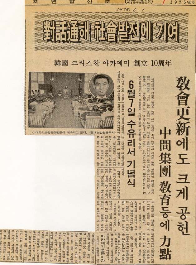 한국크리스챤아카데 창립 10주년: 대화 통해 사회발전에 기여 작성일 : 2011.06.29 조회수 : 21 공유하기 페이스북으로 공유하기 페이스북으로 공유하기 URL 산업, 여성, 교회, 학생문제 분야 등의 연구와 ‘중간집단교육’을 집중적으로 실시하고 있는 크리스챤아카데미는 10년 전에 재단법인으로 발족하여 그 본격적 운동을 시작할 때부터 사회의 개혁이나 교회의 갱신문제에 대해 각계 각층의 인사들이 폭넓게 참여하는 대화를 통해서 해결책을 모색해왔다. 관련일시 1975.06.01 노트 교회연합신보 태그 신문기사 이전 한신대 신입생을 위한 내일&리더십 캠프 다음 1차 멘토 포럼 목록으로