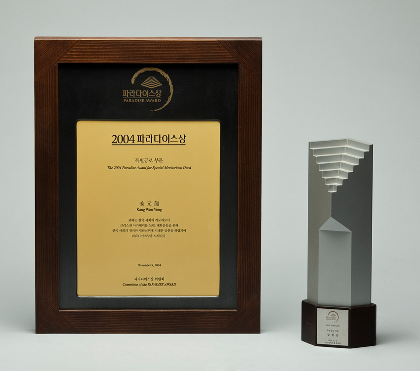 파라다이스상 특별공로 부문. 파라다이스상위원회 작성일 : 2011.06.29 조회수 : 22 공유하기 페이스북으로 공유하기 페이스북으로 공유하기 URL 귀하는 한국사회의 지도자로서 크리스챤아카데미 설립, 대화운동을 통해 한국사회의 정의와 평화실현에 지대한 공헌을 하였기에 파라다이스상을 드립니다. 관련일시 2004.11.09 태그 각종상패 이전 한신대 신입생을 위한 내일&리더십 캠프 다음 1차 멘토 포럼 목록으로