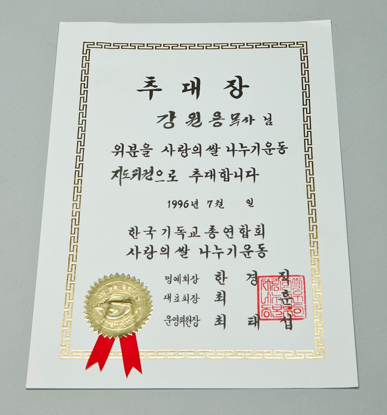 한국기독교총연합회 사랑의 쌀 나누기 운동 지도위원 추대장 작성일 : 2011.06.29 조회수 : 19 공유하기 페이스북으로 공유하기 페이스북으로 공유하기 URL 위분을 사랑의 쌀 나누기운동 지도위원으로 추대합니다. 관련일시 1996.07.01 태그 각종상패 이전 한신대 신입생을 위한 내일&리더십 캠프 다음 1차 멘토 포럼 목록으로