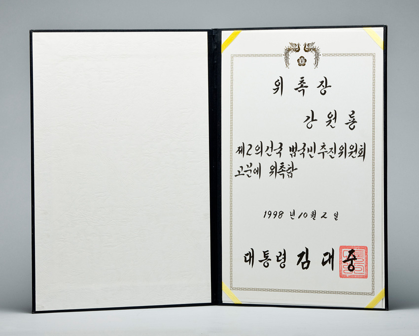 제2의 건국 범국민추진위원회 고문 위촉장. 대통령 김대중 작성일 : 2011.06.29 조회수 : 23 공유하기 페이스북으로 공유하기 페이스북으로 공유하기 URL 제2의 건국 범국민추진위원회 고문에 위촉함 관련일시 1998.10.02 태그 각종상패 이전 한신대 신입생을 위한 내일&리더십 캠프 다음 1차 멘토 포럼 목록으로