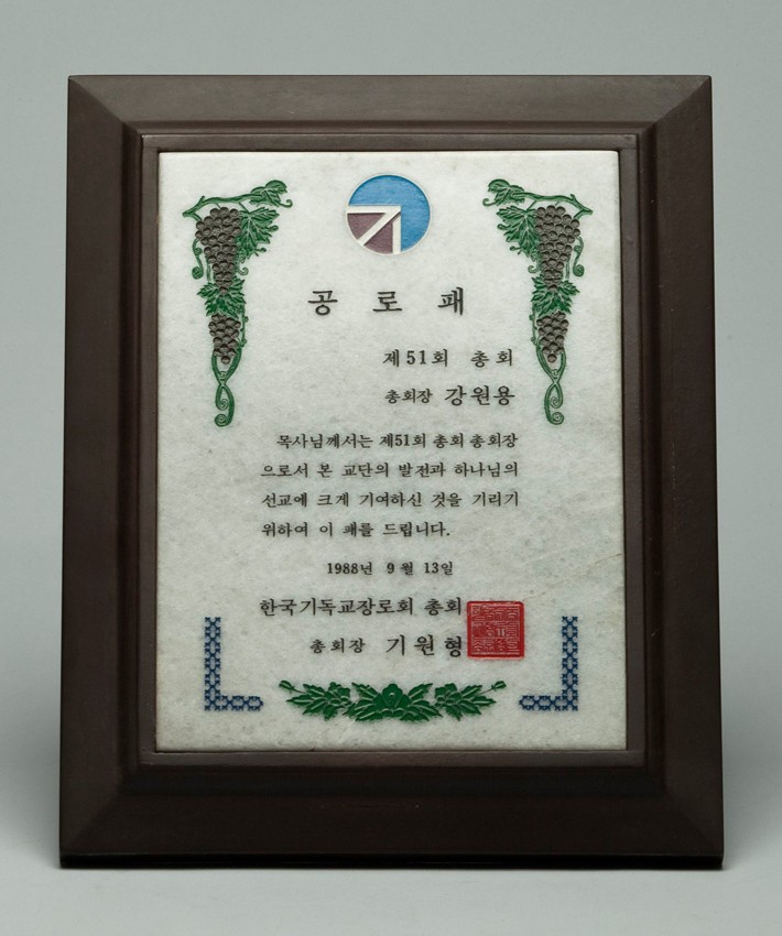 한국기독교장로회 총회 작성일 : 2011.06.29 조회수 : 19 공유하기 페이스북으로 공유하기 페이스북으로 공유하기 URL 목사님께서는 제 51회 총회 총회장으로서 본교단의 발전과 하나님의 선교에 크게 기여하신 것을 기리기 위하여 이 패를 드립니다. 관련일시 1988.09.13 태그 각종상패 이전 한신대 신입생을 위한 내일&리더십 캠프 다음 1차 멘토 포럼 목록으로