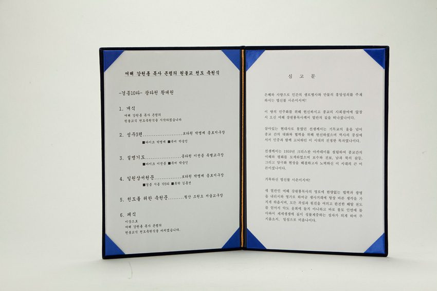 여해 강원용 목사 존령의 원불교 천도 축원식 (식순 및 심고문) 작성일 : 2011.06.29 조회수 : 54 공유하기 페이스북으로 공유하기 페이스북으로 공유하기 URL 관련일시 2006.08.19 태그 여해장례식 이전 한신대 신입생을 위한 내일&리더십 캠프 다음 1차 멘토 포럼 목록으로