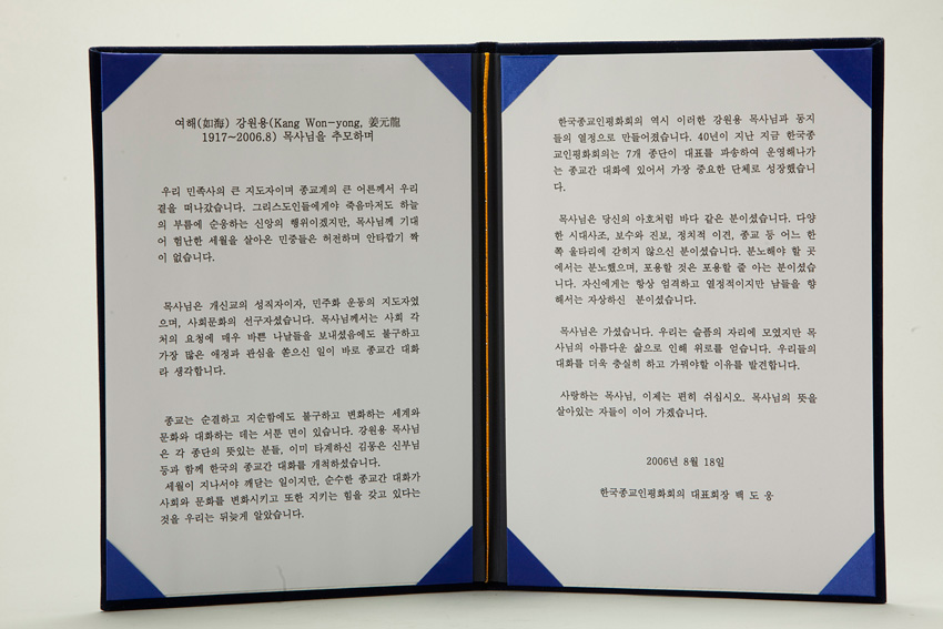 한국종교인평화회의 대표회장 추모사 작성일 : 2011.06.29 조회수 : 39 공유하기 페이스북으로 공유하기 페이스북으로 공유하기 URL 관련일시 2006.08.18 태그 여해장례식 이전 한신대 신입생을 위한 내일&리더십 캠프 다음 1차 멘토 포럼 목록으로