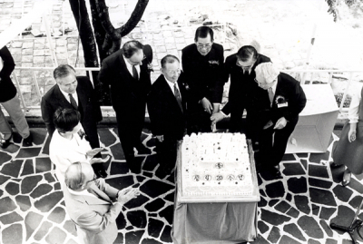 아카데미 하우스. 창립20주년의 기념 케이크를 자르는 광경