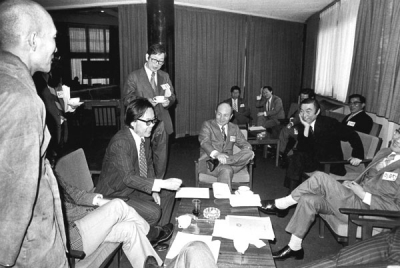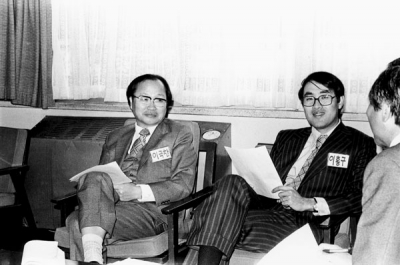 1975년 4월 25일 - 26일, 아카데미 하우스 참가자들이 이야기꽃을 피우고 있는 모습