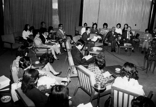 수원 사회교육원에서 1972년 5월에 실시했던 성서연구 지도자 연수회. 프로그램 방향과 진행을 논의하고...