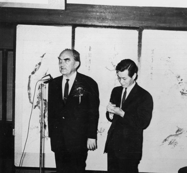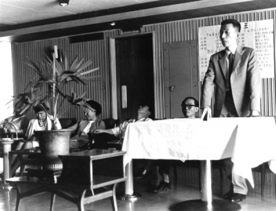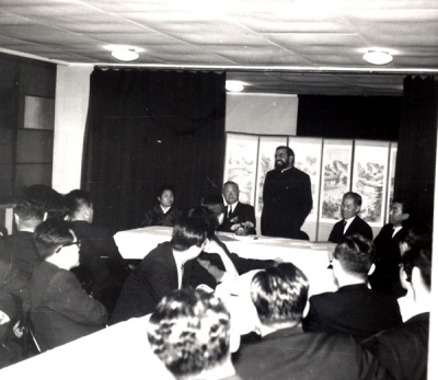 1965년 10월 크리스찬 아카데미가 코리아 하우스에서 주최한 환영만찬에서 인사말을 하고 있는 쿠르트...