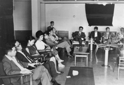 1965년 7월 8일 - 9일, 워커힐호텔 라이만홀 참여문학의 입장으로 발제하고 있는 소설가 최인훈 씨