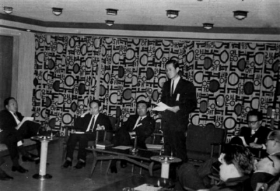 1965년 7월 8일 - 9일, 워커힐호텔 라이만홀 순수문학의 입장으로 발제하고 있는 서정주 시인