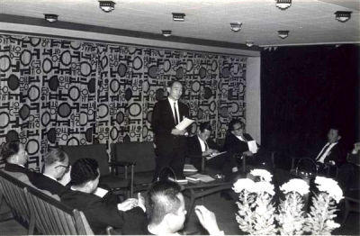 1965년 7월 19일 - 20일 독일 아카데미의 알프레드 슈미트 박사가 참가, 인사말을 하고 있다.