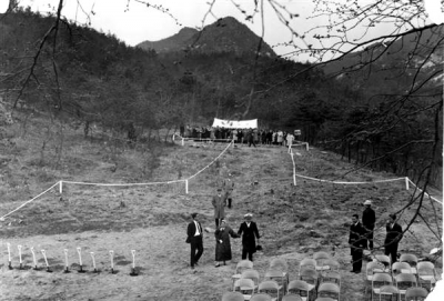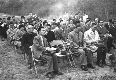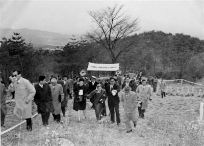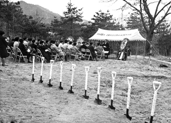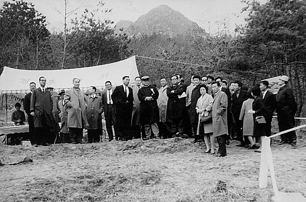 1966년 4월 16일, 서울시 도봉구 수유동 산 76번지 아카데미 하우스 기공식에 모인 재단법인...