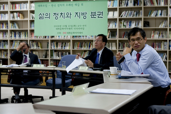 때: 2008년 10월 21일 대화문화아카데미 발제 1 기초지방선거와 정당의 관계- 이기우 (인하대 교수, 법학) 발제 2 한국 지방자치제도를 위한 중장기적 대안의 구상: 구역, 정당공천을 넘어서는 논의를 위하여 - 이종수 (연세대 교수, 행정학)