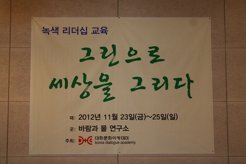 지난 2012년 11월 23일(금)~25일(일), 가평 바람과 물 연구소에서 “그린으로 세상을 그리다” 워크숍이 개최되었다. 이 워크숍은 생명환경운동 실무자들과 녹색정치가를 꿈꾸는 청년들, 그리고 녹색가치를 삶에 적용하고픈 청년들이 참가하였다. 다른 일터에서 비슷한 가치를 위해 일하는 사람들이 만나 녹색이라는 공감대를 통해 서로 만나고 배우는 기회가 되었다.